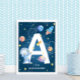 Embarquez pour un voyage cosmique avec cette affiche de lettre 'A' personnalisable, mettant en vedette un astronaute, des planètes, des étoiles et un vaisseau spatial. Parfait pour les nurseries et les chambres d'enfants sur le thème de l'espace, ce design vibrant peut être personnalisé avec un nom, ce qui en fait une pièce unique et spéciale de décoration. Inspirez un amour pour l'univers avec cette œuvre d'art charmante et éducative.