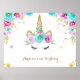 Ce panneau de licorne floral peut être utilisé pour les fêtes d'anniversaire, les baby showers, ou pour accrocher dans la chambre de votre enfant pour la décoration. Il y a des fleurs turquoises, roses et violettes sur l'affiche avec une belle licorne.