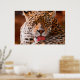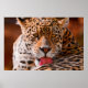 Avec une vue imprenable d'un léopard nettoyant ses pattes sur le sol.Voici une belle photo sur cette affiche