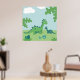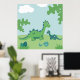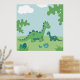 Bébé garçon dinosaure vient de sortir de l'œuf, maman dino heureuse et enfant, affiche de pépinière de dessin animé pour la chambre d'enfant. Dinosaures heureux dans un beau paysage préhistorique.