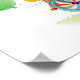 Impression d'affiche d'animal d'art aquarelle mignonne idéale pour un nouveau bébé ou un cadeau de douche de bébé. Rhinocéros aquarelle doux faisant du vélo un monocycle fantaisie cirque art dans des nuances de brun, vert, orange, violet et bleu aqua. Peinture et conception d'art aquarelle fantaisiste unique par Sarah Trett. www.sarahtrett.com pour www.mylittleeden.com
