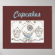 Trois cupcakes bleus en bleu clair et marron sont le point focal de ce poster d'art. Le design est issu d'une peinture aquarelle originale.