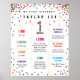 Célébrez la date d'anniversaire de votre fils ou de votre fille avec cette affiche colorée de confettis arc-en-ciel. Avec ses livres, ses aliments, ses jouets, sa taille, son poids, ses amours et bien plus encore, vous êtes sûr de chérir cette affiche pour les années à venir. Facile à éditer et aurait l'air extraordinaire encadré pour votre fête!