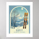 Affiche d'un merveilleux séjour de ski dans les belles montagnes de la vallée de Sunshine à Banff en Alberta au Canada. Cette petite affiche présente une arche avec un paysage de montagnes bleu-gris époustouflant et des planches de ski rétro dans un motif tribal orange au premier plan. Le design est une combinaison charmante de rétro et de moderne, et j'espère que vous l'apprécierez !