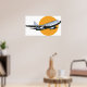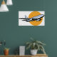 Un avion volant contre un soleil orange. Ce design semble vraiment efficace sur ces Poster