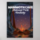 Affiche de voyage rétro de la grotte de Mammoth dans le Kentucky, affiche de vacances USA de camping, feu de camp à l'intérieur d'une grotte.