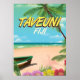Taveuni, affiche des fêtes fidjiennes. La plage de sable de Taveuni.