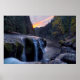 Avec une vue à couper le souffle d'une petite cascade froide courant le long de la vallée de la montagne.et le paysage du ciel menant sous un ciel rose et bleu.voici une belle photo sur cette affiche