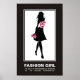 Fashion girl avec empreinte de léopard rose motivationnel élégant imprimé d'affiche, avec une modèle de mode moderne fille en noir avec panthère/léopard poster de animal sans plan et sac à main en fuchsia rose chaud sur arrière - plan blanc. Il y a une bordure noire autour et la citation : Fashion girl : Être une femme à la mode, c'est se connaître soi-même. Certains éléments sont offerts par vectorportal.com.