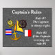 Règles du capitaine - affiche Règle no 1 Le capitaine a toujours raison. Règle #2 Si le capitaine a tort, voir règle #1.