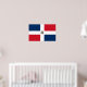 Le drapeau de la République Dominicaine, tel que décrit par l'article 96 de la Constitution dominicaine, est orné d'une croix blanche centrée qui s'étend aux bords et divise le drapeau en quatre rectangles—les plus hauts sont bleus (côté levant) et rouges, et les plus bas sont rouges (côté levant) et bleus. Une grande armoiries ornées d'un bouclier au design de drapeau et supportées par une branche de laurier de baie (à gauche) et une fronde de palmier (à droite) est au centre de la croix ; au-dessus du bouclier, un ruban bleu affiche la devise nationale : Dios, Patria, Libertad (Dieu, Patrie, Liberté). Sous le bouclier, les mots República Dominicana apparaissent sur un ruban rouge (ce ruban rouge est représenté dans des versions plus récentes comme ayant ses pointes vers le haut). Au centre du bouclier, flanqué de trois lances (deux d'entre elles tenant des bannières dominicaines) de chaque côté, est une Bible avec une petite croix au-dessus et dit être ouvert à l'Évangile de Jean, soit au chapitre un ou chapitre 8, verset 32, qui dit Y la verdad nos hará libre (Et la vérité vous rendra libres). Le bleu sur le drapeau représente la liberté, le blanc pour le salut, le rouge pour le sang des héros. L'enseigne civile suit le même design, mais sans la charge dans le centre.
