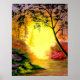 Peinture d'une forêt avec la lumière du soleil à la tête du sentier.