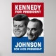 Cette affiche électorale vintage présente les candidats démocrates de 1960 au poste de président et vice-président, John F. Kennedy et Lyndon Johnson. On peut y lire : "Kennedy pour le président, Johnson pour le vice-président". Célébrez l'histoire américaine avec ce poster vintage restauré numériquement de The War Is Hell Store. Vous voulez plus de produits militaires et d'histoire? Extraire