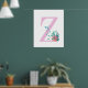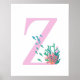 Affiche Monogramme Initiale Z Rose Turquoise Océan
