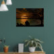 Avec une vue époustouflante d'une Oasis de l'île Enchantant avec vue sur l'océan Majestueux.Vous pouvez voir la silhouette de certaines personnes autour d'un feu et le reflet de l'océan du beau soleil orange.ceci sur cette photo est une belle photo sur cette affiche