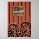 Une belle affiche patriotique serait un joli ajout à n'importe quelle maison. Vieux Gloire encadrée avec les mots "Terre des Libres, à cause des Courageux" accroché sur le côté de la grange de campagne avec roues de wagon .. Fait un beau mur suspendu encadré.