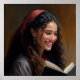 Peinture à l'huile portrait d'une belle Israélienne souriante lisant un livre. Il s'agit d'un autre design 100% original Snuggle Hamster.