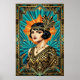 Affiche portrait de femme Flapper Art déco doré sa