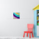 Soleil donnant des vagues de couleurs entourées d'étoiles.