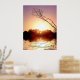 série de réalisme solaire : coucher de soleil à l'horizon silhouette d'arbres donnant une lumière de vie énergétique réfléchissant sur l'eau,..