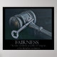 Le gavel du juge en bois et la clé squelette en laiton. Le mot "équité" et une définition du mot.