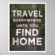 Le seul moyen de trouver sa véritable maison est de voyager partout. Affiche inspirante pour ceux qui ont un esprit d'itinérance.