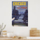 Affiche de voyage d'époque pour les vols de Trans World Airlines à destination de Chicago montrant des ponts enjambant une rivière la nuit, vers 1960.