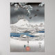 Belle impression de blocs de bois d'Ukiyo-e japonais par Utagawa Hiroshige, un artiste réputé pour ses gravures de paysages. Voici le panneau 2 du triptyque intitulé Modern Genji : Viewing in Snow.