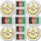 Four Custom-cut vinyl stickers with the coat of arms of Afghanistan and seven stickers with the Afghan flag in the center
