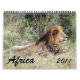 Kalender 2011, der 15 fantastische afrikanische Tiere in ihren natürlichen wilden Einstellungen kennzeichnet. Schließt Löwe, Zebra, Gepard, Giraffe, Elefanten, Flamingo und mehr mit ein.