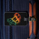 Farbenfrohe afrikanische Landkarte in Rot, Gelb und Grün mit schwarzem "Afrika" Textdesign und Dekoration ethnischer Formen