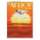 Africa By Air - Ein niedliches Cartoon/Vintages Reiseplakat für den afrikanischen Kontinent bei einem heißen und feuchten Sonnenuntergang im Abend.