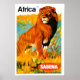 Vintages Reiseplakat für Sabena Airlines nach Afrika mit einem majestätischen Löwen in der Wildnis.