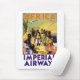 Vintages Reisetposter von Imperial Airways, in dem die Flugdienste eines traditionellen Dorfes mit einem Propellerflugzeug über dem Kopf dargestellt werden.