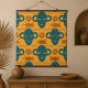 Entdecken Sie Ihren Raum mit diesem auffälligen Stammmaske-Poster, das kühne afrikanische Gesichtsmotive in aquamarin und braun auf einer bräunlichen Leinwand präsentiert. Das sich wiederholende Muster bringt Wärme, Kultur und visuelles Interesse in jeden Raum. Ideal für Zuhause, Studios oder Klassenzimmer mit kreativen oder ethnischen Elementen.