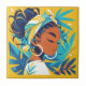 Keramik Kachel wird mit einem hübschen afrikanischen Frauenkunstdruck gezeigt. Passen Sie dieses Objekt an oder kaufen Sie, wie es ist. Lizenziertes Bild