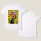 Feiern Sie mit unseren afrikanischen Sonnenblumen-T - Shirt die Schönheit zeitgenössischer afrikanischer Kunst. Mit einem atemberaubenden Portrait einer jungen Afrikanerin, die mit einer lebendigen roten Bandana und einer Sonnenblume geschmückt ist, steht sie anmutig in einem Feld von Sonnenblumen, das in friedlicher Meditation verloren geht. Dieses Design verkörpert das Wesen der Ruhe, Kraft und natürlichen Schönheit und macht es zu einer perfekten Ergänzung zu Ihrem Kleiderschrank.
