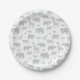 Eine Menagerie afrikanischer Tiere in weichem Grau machen diese gemusterten Teller zu einem perfekten, subtilen Accessoire zu jeder Gender-neutralen Safari-Themenfeier, wie zum Beispiel einer Babydusche oder einer Geburtstagsparty.