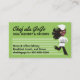Niedliche afrikanische amerikanische Frau mit dem fantastischen Fließenhaar-Koch, der mit einer Nahrungsmittelhauben- oder -abendessenservierplatte auf dieser Geschäftskarte für Nahrungsmittellieferung, Mahlzeitlieferung oder Catering läuft.
