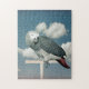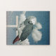 Kongo Afrikanischer Grau Papagei auf einer Halse gegen einen blauen Himmel mit Wolken auf einem Puzzle.