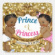 Adorable afrikanische Prinz mit einer Goldkrone neben einer schönen afrikanischen Prinzessin, die eine Goldkrone auf einem goldenen Rahmen mit goldenem Glitzer trägt. Fügen Sie das Ereignisdatum auf dem Banner des Goldband hinzu. ©Miss Sassy Party Designs