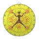 Afrikanisches, primitives Design mit Tänzerin und Sonnengestaltung auf gelbem Hintergrund