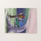 Ein Mädchen imitiert ihre Haustier-Eule, die ihre Flügel unter einem rosa flauschigen Baum ausbreitet, von dem kleine Glitzern abgehen.