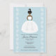 Customisez et personnalisez cette jolie invitation à la douche nuptiale avec un arrière - plan texturé bleu clair et une jolie mariée afro-américaine dans une robe mariage sans paille avec une écharpe bleue et un joli motif florissant sur sa jupe. Elle porte une fleur dans ses cheveux et s'accessoire avec une jolie paire de boucles d'oreilles pendantes en forme de goutte de larme. Cliquez sur le lien suivant pour voir tous nos Chrissy H. Illustration © Chrissy H. Studios LLC