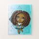 Eine niedliche Pose eines Mädchens in einer inspirierten afrikanischen Kleidung. Ein niedliches Puzzleteil für ein besonderes Mädchen.