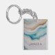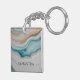 Ce magnifique design abstrait capture la beauté fascinante de l'agate avec une touche côtière. Des bandes scintillantes de turquoises lumineux, turquoise et blanc imitent les motifs complexes que l'on trouve dans les précieux opales, tout en évoquant le flux serein des courants océaniques. Les veines dorées et les taches entrecoupées dans la pièce ajoutent une touche d'opulence, rappelant les rivages baisés par le soleil. Les lignes et les calques ondulants et lisses créent un sens de profondeur et de mouvement, tout comme le baguage dans les agates naturelles. Ce morceau mêle harmonieusement l'allure des pierres précieuses à la tranquillité d'une vue sur la mer, ce qui en fait un endroit parfait pour ceux qui apprécient à la fois les merveilles géologiques et l'esthétique côtière dans une forme moderne et abstraite. Personnalisez avec un nom.