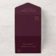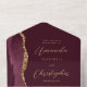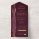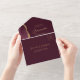 Die links Kulisse dieses eleganten, modernen und einladenden Hochzeitszimmers und der UAWG mit einer bordeauxroten Aquarellgrenze, die mit dem vergoldeten Glitzer der Imitate bestickt ist. Der anpassbare Text kombiniert goldfarbenes stylisches Kalligrafieschrift mit serifenlosen Schriftart auf bordeauxrotem Hintergrund. Die Rücksendeadresse erscheint auf der Außentafel und auf der Rückseite der abnehmbaren RSVP-Karte in goldfarbenem Text auf der soliden Bordeaux.