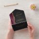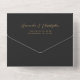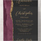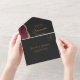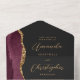 Die links Kulisse dieses eleganten, modernen und einladenden Hochzeitszimmers und der UAWG mit einer bordeauxroten Aquarellgrenze, die mit dem vergoldeten Glitzer der Imitate bestickt ist. Der anpassbare Text kombiniert goldfarbenes stylisches Kalligraphieskript und sans Serif-Schriftart auf schwarzem Schiefer-Hintergrund. Die Rücksendeadresse erscheint auf der Außentafel und auf der Rückseite der abnehmbaren RSVP-Karte in goldfarbenem Text auf schwarzem Schiefer.