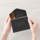 Die links Kulisse dieses eleganten, modernen und einladenden Hochzeitszimmers und der UAWG mit einem verbrannten, oranfarbenen Aquarellrand besticht durch den vergoldeten Glitzer der Imitate. Der anpassbare Text kombiniert goldfarbenes stylisches Kalligraphieskript und sans Serif-Schriftart auf schwarzem Schiefer-Hintergrund. Die Rücksendeadresse erscheint auf der Außentafel und auf der Rückseite der abnehmbaren RSVP-Karte in goldfarbenem Text auf schwarzem Schiefer.