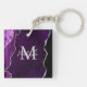 Ce porte - clé est décoré d'un élégant et glamour arrière - plan en marbre d'agate avec des détails de gemme de géode et des accents de parties scintillant faux argent. Le monogramme combine écriture manuscrite et polices sans serif modernes pour un look élégant et sophistiqué. Cela fera le cadeau idéal car il peut être customisé avec un nom et une initiale. Les teintes violettes profondes le rendent parfait pour l'automne et l'hiver.